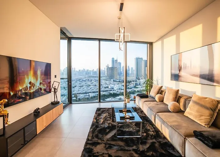 Просторные Sobha Waves Grande Big 1BR apt Burj Khalifa views! с видом на сад располагают балконом и террасой, а также системой климат-контроля. Апартаменты предлагают гостям 1 спальню для отдыха. В распоряжении гостей 2 ванные комнаты.